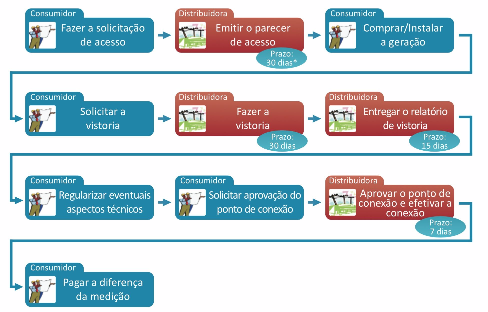 * Se for minigeração e houver necessidade de obras na rede de distribuição, este prazo é de 60 dias